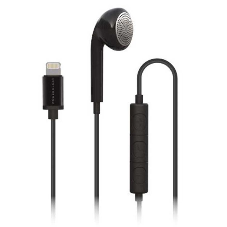 سماعة أذن Powerology Mono مع موصل MFi Lightning - أسود