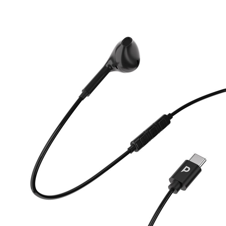 سماعات أذن باورولوجي مونو بواجهة USB-C بطول 1.2 متر، مع أزرار تحكم مدمجة نشطة، صوت عالي الدقة، حساسية 40 ديسيبل، متوافقة مع جميع الأجهزة من نوع C - أسود