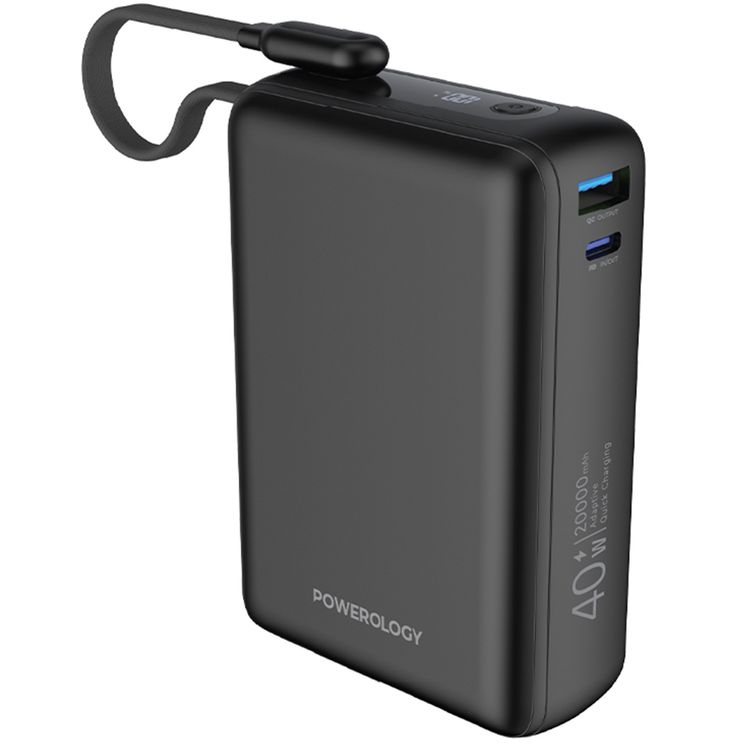 باورولوجي مونتريال باور بانك بسعة 20000 مللي أمبير مع كابل Type-باور بانك باورولوجي مونتريال 20000 مللي أمبير/ساعة مع كابل من النوع C، PD 40 واط، QC 18 واط، منافذ USB-A وUSB-C، شحن سريع، حماية مدمجة، لوحة عرض - أسودC، بقدرة 40 واط PD، و18 واط QC، ومنافذ USB-A وUSB-C، شحن سريع، وسائل حماية مدمجة، لوحة عرض،