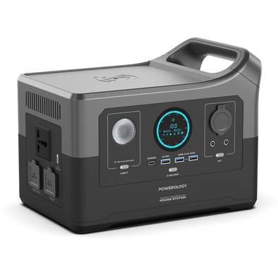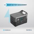 مولد الطاقة الذكي بقوة 700 وات من باورولوجي مع إعادة شحن بالطاقة الشمسية بقوة 200 وات وتوصيل طاقة بقوة 100 وات، إخراج شحن لاسلكي بقوة 15 وات، نظام إدارة بطارية ذكي، متوافق مع iOS و Android، مصباح يدوي مدمج، تصميم محمول - أسود