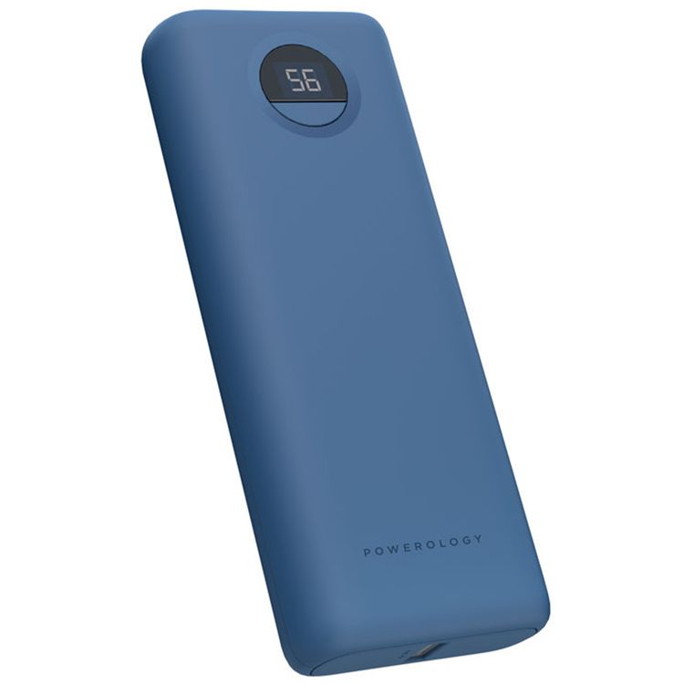 باور بانك شحن سريع من باورولوجي بسعة 20000 مللي أمبير في الساعة، PD 30 وات، صغير الحجم للغاية، مدخل ومخرج USB-C، مخرج USB-A، شحن سريع، مؤشر عرض رقمي - أزرق