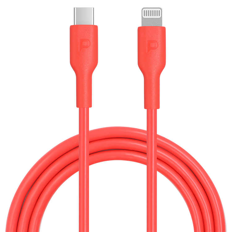باورولوجي كابل USB-C إلى Lightning مع قدرة توصيل طاقة بقوة 20 واط، بطول 1.2 متر، مصنوع من مادة PVC، متوافق مع جميع الأجهزة، لنقل البيانات وشحن سريع - أحمر