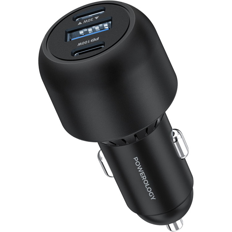 شاحن سيارة باورولوجي فائق السرعة بقدرة 130 وات مع كابل 0.9 م / 3 قدم من النوع C إلى النوع C - أسود