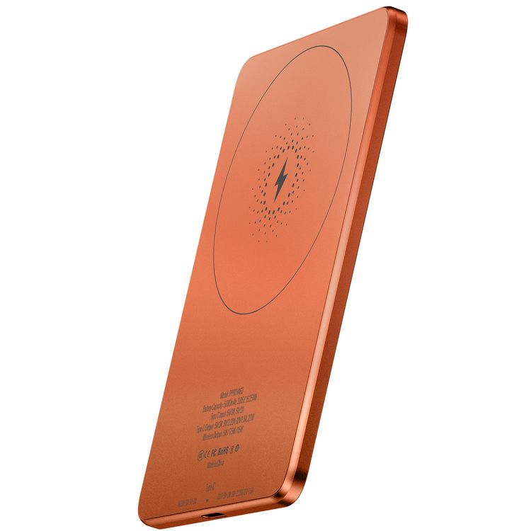 باورولوجي بنك الطاقة ألترا-ثين 5000mAh ماج سيف، محمول وخفيف الوزن، تبديد حرارة فعال، هيكل ألومنيوم، حماية مدمجة، مغناطيس قوي - برتقالي