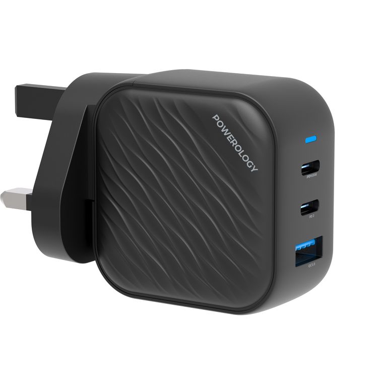 شاحن جداري بقوة 65 واط من Powerology GaN Ultimate Dual PD، مزود بتقنية GaN، وحماية مدمجة، والشحن السريع 3.0 - أسود