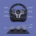 - 5. 【High-end Racing Simulator】: PXN V9 racing steering wheel provides a rotation angle switch: The dial switch can switch from 270 degrees to 900 degrees steering. PXN-V9 Game Steering Pans Designed for professional racing games, full-size drive wheels with pedal and shift lever: responsive foot pedals, acceleration, braking and shift, with real car feel. The six-speed manual gearbox uses the "H" gearbox for rapid and smooth variable speed.
