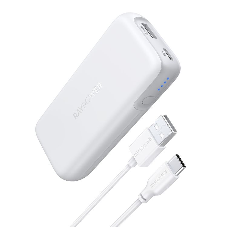 راف باور 2 منفذ بي دي باور بانك محمول 10000 مللي أمبير 29 واط شحن سريع ، منفذ يو تس بي سي بي دي ومنفذ يو اس بي - ا ، شاحن محمول صغير الحجم ، طاقة هائلة ، باور بانك للحماية من الحرارة الزائدة - أبيض