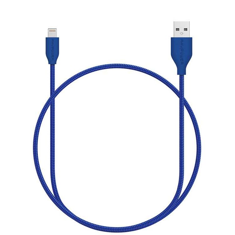 RAVPower Kevlar Braided Cable 3ft/0.9m 2.4A Compatible for iPhone Lightning Devices - Fast Charging Long-lasting Durable Connector - Charge & Sync Data Transmission Cord - Blue