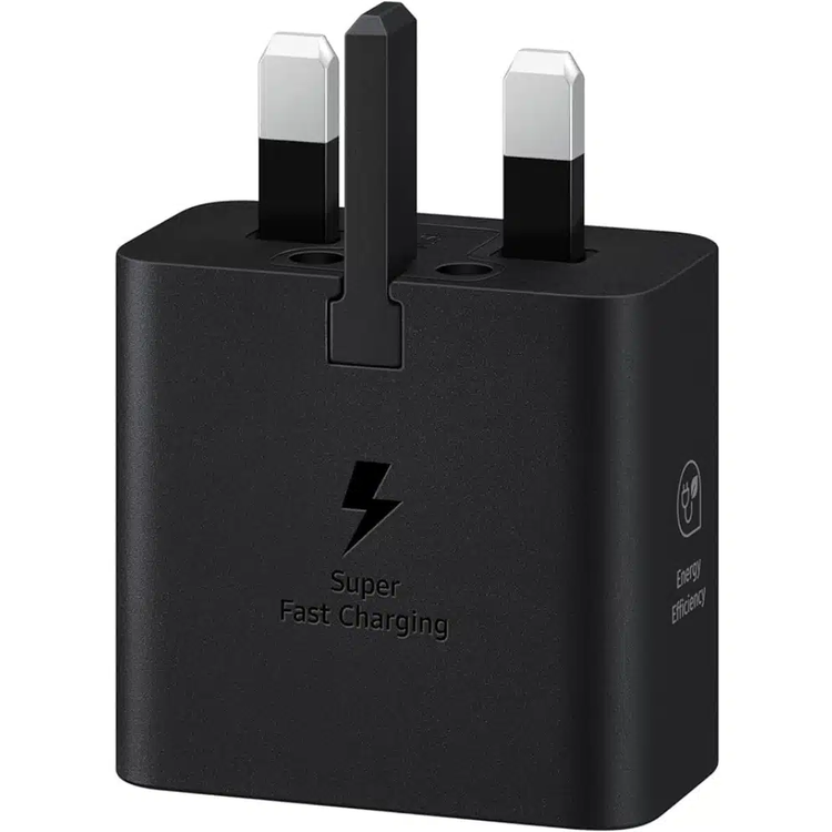 محول USB-C PD 25 وات من سامسونج، 3 دبابيس، يدعم الشحن السريع للغاية بقوة 25 وات - أسود
