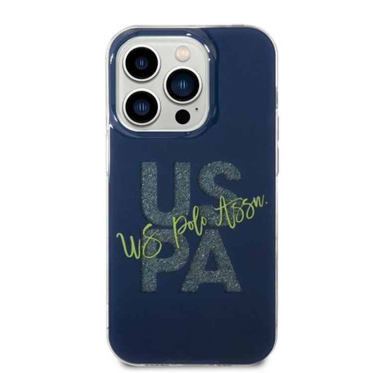 حافظة بطاقات لامعة من US Polo لهاتف iPhone 14 Pro Max - البحريه الزرقاء