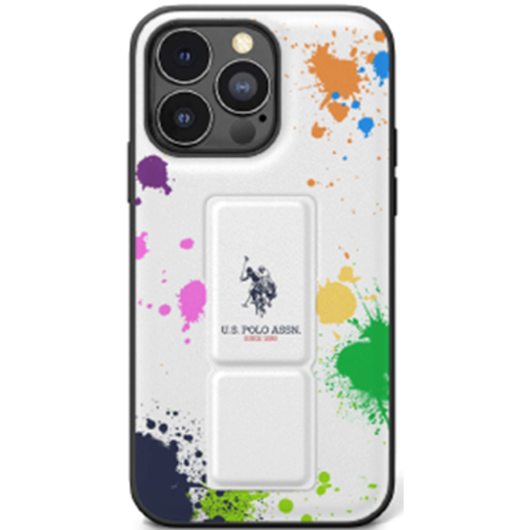 يو اس بولو أسن. حامل هاتف iPhone 15 Pro مصنوع من جلد البولي يوريثان مع حافظة باللون الأبيض - أبيض