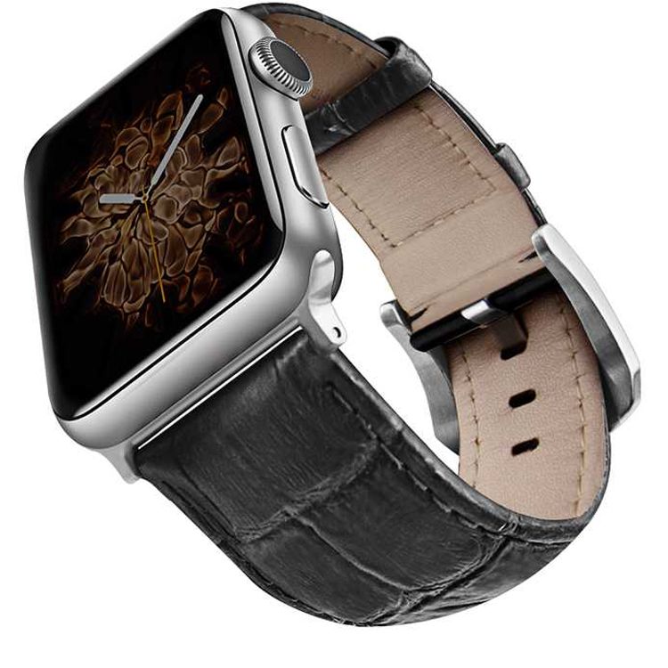Viva Madrid Montre Crox Genuine Leather Strap Compatible for Apple Watch 42/44MM - Fit & Comfortable Replacement Wrist Band - Sweat Resistant & Lasting Durability - Black/Silver