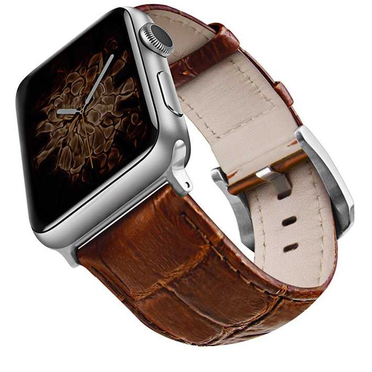 حزام Viva Madrid Montre Crox من الجلد الأصلي متوافق مع ساعة Apple مقاس 42/44 ملم - سوار معصم بديل مناسب ومريح - مقاوم للعرق ومتانة دائمة - بني/فضي