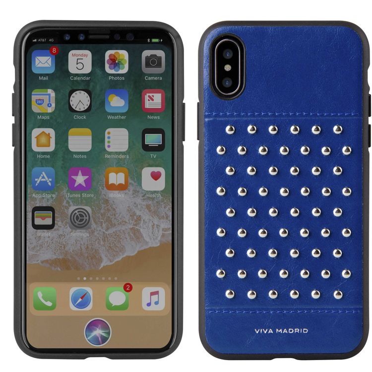 Viva Madrid Tacho Back Case with Integrated Nano SIM Card & Ejector Pin Slot Compatible for iPhone X - Drop Protection Cover Embedded with Sparkling Studs - Anti-Scratch - Blue