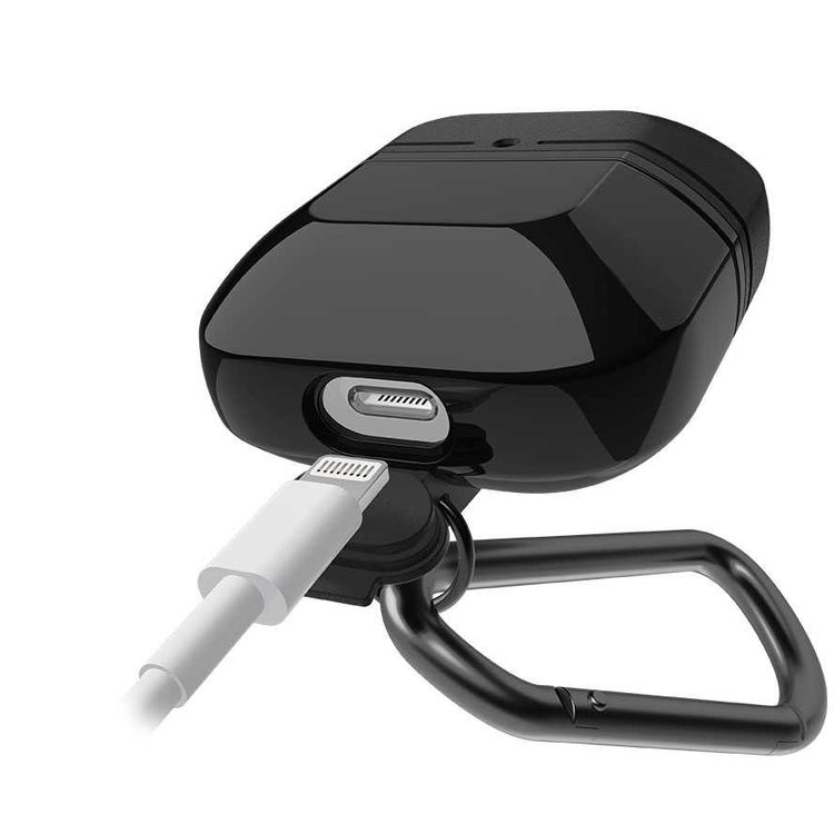 جراب X-Doria Defense Journey لسماعات AirPods 1 و2 مع حلقة تثبيت وحلقة قابلة للفصل، مصنوع من مادة TPU والسيليكون، مقاوم للماء والغبار، حماية كاملة بزاوية 360 درجة، مضاد للخدش - أسود