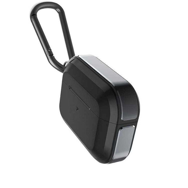 X-Doria Defense Trek Aluminum Bumper Case with Anti-Lost Carabiner & Loop Compatible for AirPods Pro - Sleek Design Cover - 360 Degree Protection - Charging Light Visible - Black