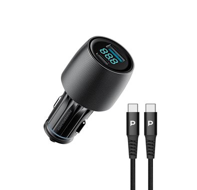 توصيل مجاناشاحن سيارة باورولوجي فيلوكس بقوة 83 واط مع منفذين وكابل من نوع USB-C إلى USB-C، شحن فائق السرعة، إجمالي قدرة 83 واط، شحن قوي للحواسيب المحمولة، نظام حماية متعدد - أسودمخزون79.00