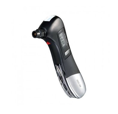 أداة إنقاذ رقمية لقياس ضغط الإطارات 9 في 1 من Green Lion مصنوعة من الفولاذ المقاوم للصدأ + مواد زجاجية وبلاستيكية، ×1 بطارية AAA، تتضمن مطرقة لكسر الزجاج، مفك براغي، مقص، قاطع حزام الأمان، ضوء LED أحمر، مقياس ضغط الهواء، كماشة، فوهة إطار، مصباح LED أبيض متضمن - أسود