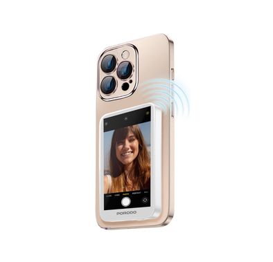 شاشة سيلفي Porodo مع خاصية العرض المغناطيسي، مدة الاستخدام 3.5 ساعات، شاشة HD بحجم 4.02 بوصة، طاقة مقدرة 1.85 واط، بطارية بسعة 1800 مللي أمبير، تدوير الشاشة بزاوية 180 درجة، متوافقة مع أنظمة iOS 9.0+ و Android 2.0+، شبكة Wi-Fi ذات النطاق المزدوج 2.4G/5G - لون أبيض