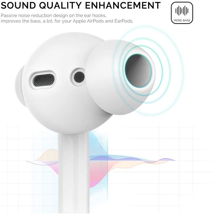 غطاء سيليكون AhaStyle لـ Airpods (3 أزواج كبيرة) - أبيض