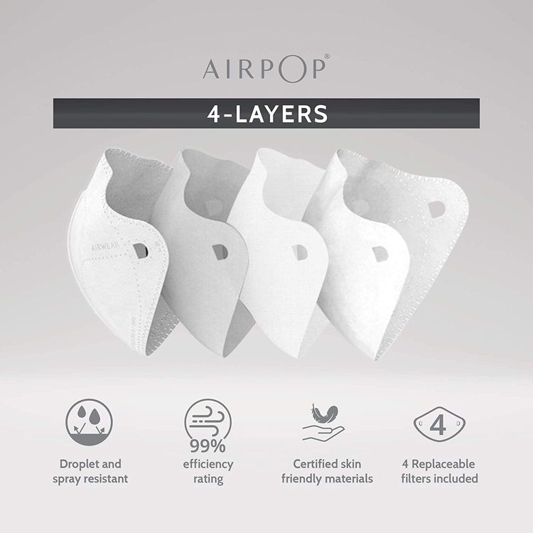 ايربوب قناع وجه أصلي قابل لإعادة الاستخدام ، أغطية وجه مرشح من 4 طبقات ، مقاس محيطي ، قناع وجه قابل للطي قابل للتعديل ، أقنعة وجه للبالغين لحماية الملوثات ، أسود