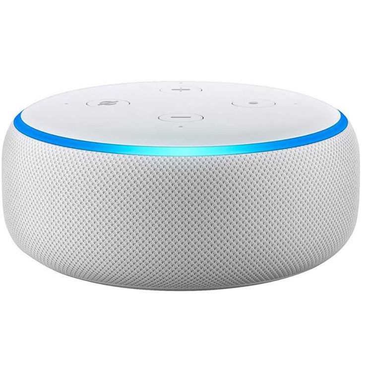 أمازون مكبر صوت ايكو دوت (الجيل الثالث) يتم التحكم فيه بالصوت ، اسأل اليكسا لتشغيل الموسيقى ، والإجابة على الأسئلة ، وقراءة الأخبار ، وتوصيل مكبر الصوت عبر بلوتوث أو مع كابل صوت 3.5 مم ، ابيض