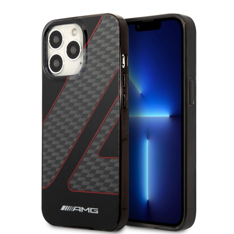 AMG Double Layer Checkered Flag Pattern Transparent Hard Case Compatible with iPhone 13 Pro - Red