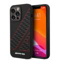 جراب من السيليكون السائل من Amg بنمط علم مربعات - آيفون 14 برو ماكس - أسود أحمر
