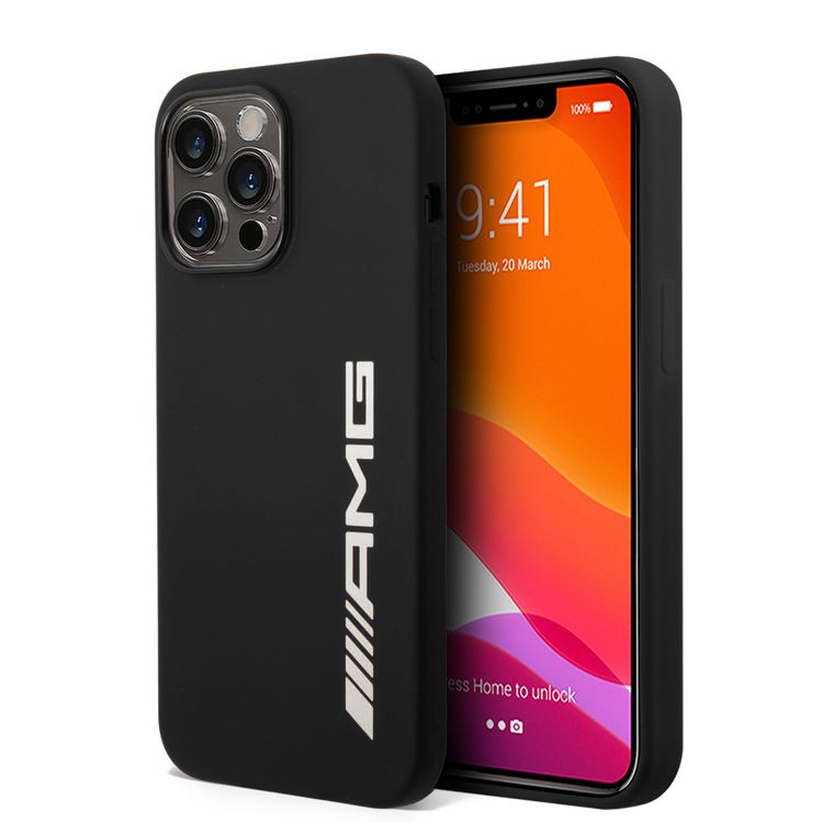 AMG Liquid Silicone Case with Colorful AMG Logo Bumper ProtectioniPhone 14 Pro Max Compatibility - White
