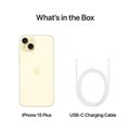 هاتف Apple iPhone 15 Plus بسعة 256 جيجابايت، شاشة 6.7 بوصة، شريحتي اتصال eSIM، دقة الكاميرا 48 ميجابكسل، شريحة A16 Bionic، نوع موصل USB-C، تقنية شبكة 5G، مقاوم للرذاذ والماء والغبار - أصفر