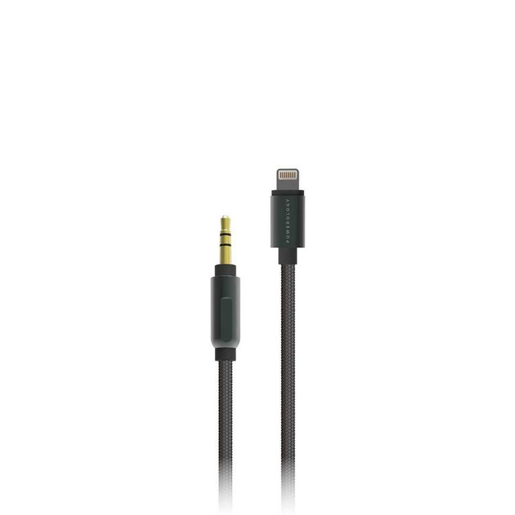 كابل باورولوجي من لايتنينج إلى AUX مع لفائف مضفرة من الألومنيوم، بطول 1.2 متر، +5000 انحناءة عمر - رمادي