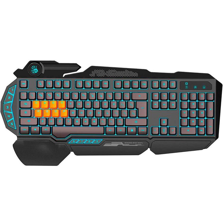 لوحة مفاتيح للألعاب بلودي B318 8 لايت سترايك مع راحة ممتدة لراحة اليد ووضع الألعاب - رفع مضاد للانزلاق - استجابة للتباطؤ الصفري - مقاومة للانسكاب - لوحة مفاتيح كمبيوتر فائقة التحمل - أسود