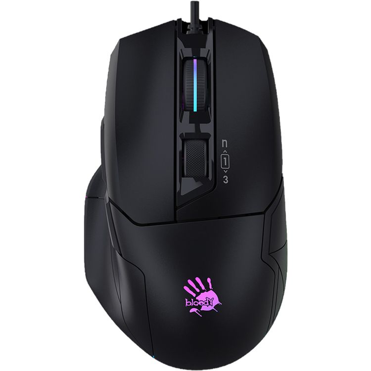 ماوس ألعاب بلودي RGB مع مفتاح تحكم دقيق، بمفتاح تبديل 4 إعدادات LOD، ودقة تصل إلى 10,000 CPI، وعجلة مطاطية مزدوجة الحقن، و5 تأثيرات إضاءة RGB - باللون الأسود.