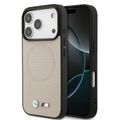 غطاء جلد ملفوف بالكامل من BMW MagSafe مع شعارات معدنية لهاتف iPhone 17 Pro Max، تغليف مستدام، تصميم سهل التركيب، شكل نحيف، حماية من السقوط - رمادي