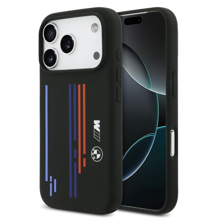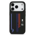 غطاء سيليكون سائل بتقنية MagSafe من BMW مع طبعة متعددة الألوان لجهاز iPhone 17 Pro، حماية من السقوط، تصميم نحيف، سهل التركيب، تغليف مستدام - لون أسود