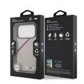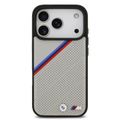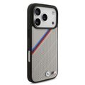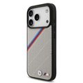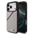 حافظة BMW MagSafe جلد PU مع شعارات معدنية وخطوط مائلة ثلاثية الألوان لأيفون 17 برو، حماية من الصدمات، تغليف مستدام، تصميم سهل التركيب، ملف نحيف - رمادي