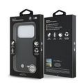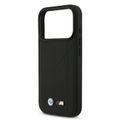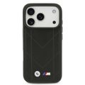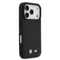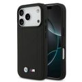 غطاء جلدي مبطن من BMW MagSafe مع شعارات معدنية لهاتف iPhone 17 Pro، تصميم نحيف، سهل التثبيت، عبوة مستدامة، حماية من السقوط - باللون الأسود