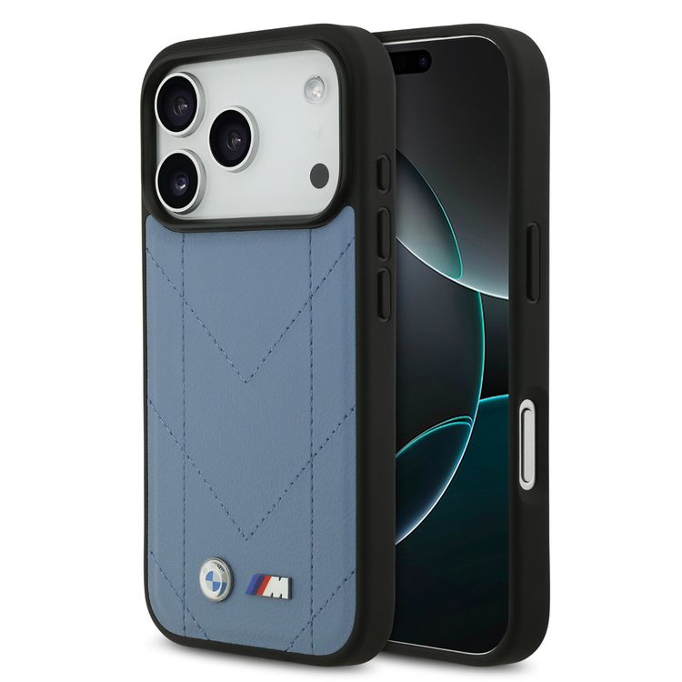 جراب جلد من ماركة بي إم دبليو MagSafe مبطن مع شعارات معدنية لهاتف iPhone 17 Pro Max، بتصميم نحيف، سهل التركيب، تغليف مستدام، حماية من السقوط - باللون الأزرق