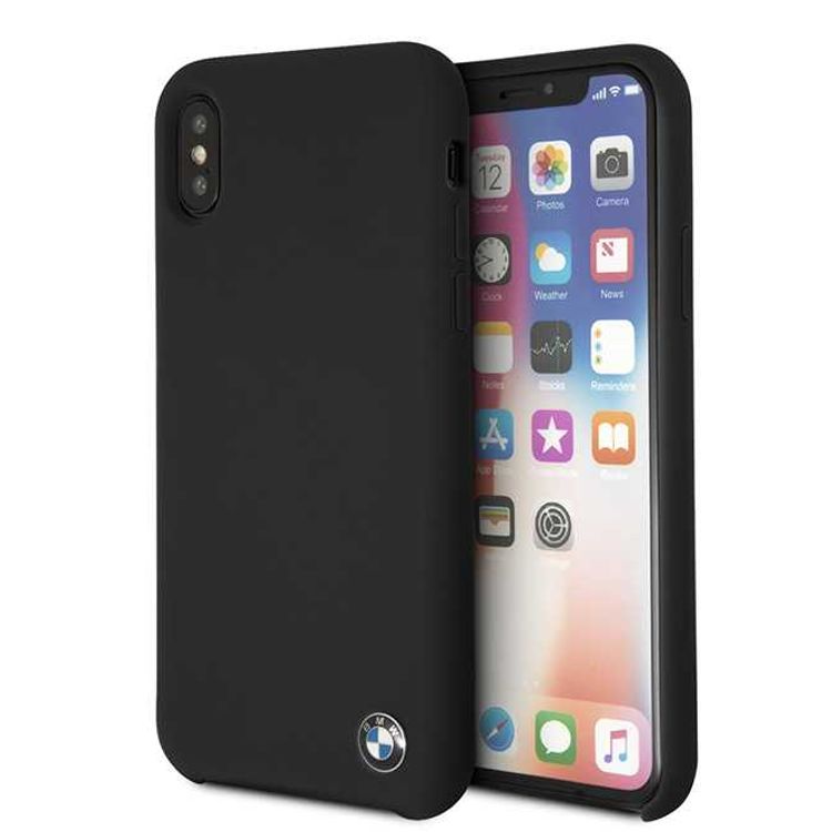 بي ام دبليو جراب سيليكون من الألياف الدقيقة الحقيقية لهاتف ايفون أكس - أسود