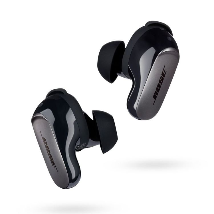 - المحتويات في العلبة: سماعتان Bose QuietComfort Ultra اللاسلكية مع إلغاء الضوضاء، مجموعة Fit Kit من Bose: ثلاث أطراف أذن، ثلاث أزواج من أربطة الاستقرار، حافظة شحن، كابل USB-C (12 بوصة)، ورقة السلامة