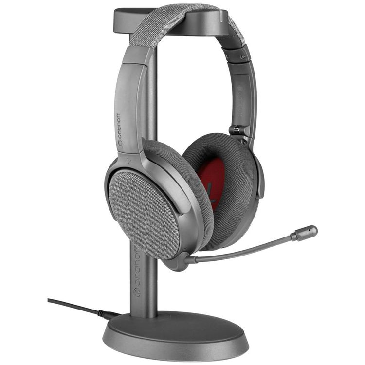 سماعات Buddyphones Onanoff Fokus+ ANC مع حامل شحن لاسلكي، عمر بطارية يصل إلى 50 ساعة، إصدار بلوتوث 5.2، كابل صوت بطول 1.2 متر مع مقبس 3.5 ملم، كابل شحن USB-C إلى USB-C بطول 1.5 متر، محرك ديناميكي 40 ملم، ميكروفون بوم قابل للفصل - اللون الرمادي الغامق.