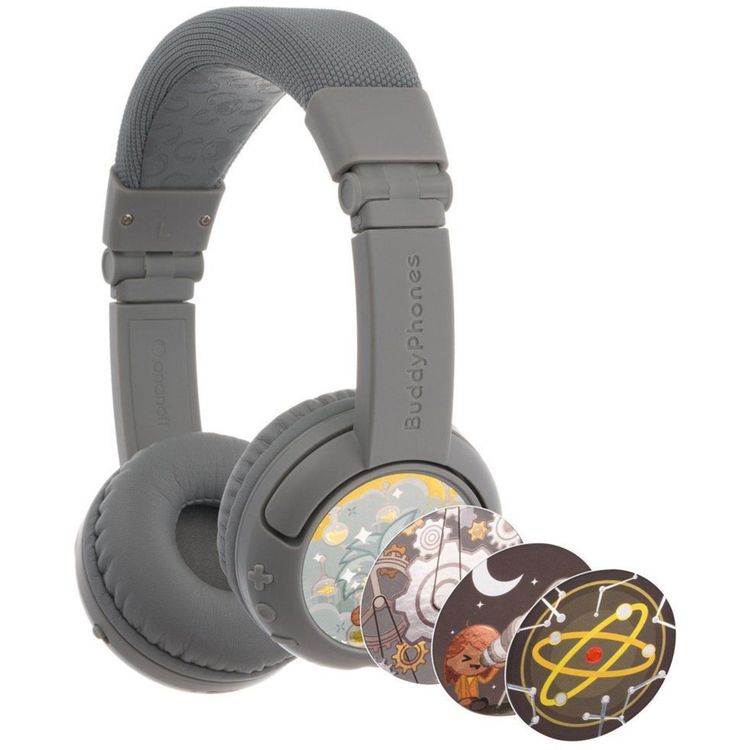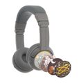 سماعات رأس BuddyPhones Play+ للأطفال مع اتصال سلكي ولاسلكي، تصميم قابل للطي، حجم عصابة رأس قابل للتعديل، ميكروفون مدمج، عمر بطارية 20 ساعة - رمادي جوهري