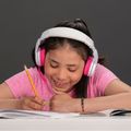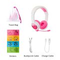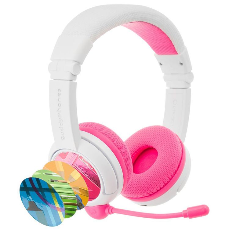 سماعات رأس BuddyPhones SchoolPlus للأطفال مع اتصال سلكي ولاسلكي، وميكروفون قابل للفصل، ووضع دراسة معزز للصوت، وتصميم قابل للطي - وردي