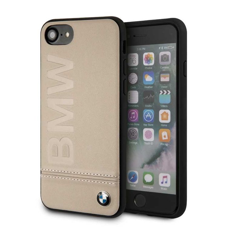 سي جي موبايل بي ام دبليو جراب صلب من الجلد الأصلي مع شعار بصمة لهاتف ايفون 7/8 / SE (2) مرخص رسميًا ومقاوم للصدمات ومقاوم للخدوش وسهل الوصول إلى جميع المنافذ والكاميرات والأزرار ومكبرات الصوت ، متوافق مع الشواحن اللاسلكية ، رمادي داكن