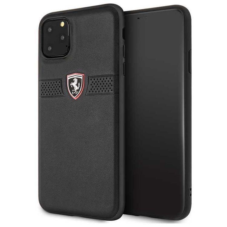 سي جي موبايل فيراري جراب هاتف من الجلد المحبب Off Track لهاتف ايفون 11 برو ماكس (6.5 بوصة) جراب محمول مناسب لشواحن لاسلكية مرخصة رسميًا - أسود