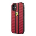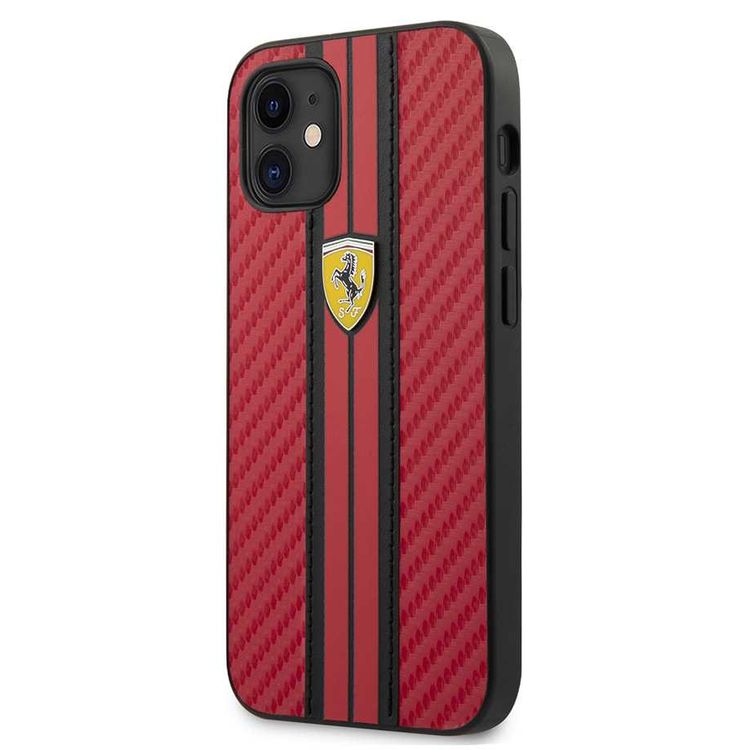 سي جي موبايل جراب هاتف فيراري On Track كربون PU صلب مع خطوط وشعار معدني متوافق مع ايفون 12 ميني (5.4 بوصة) جراب هاتف محمول مضاد للخدش مرخص رسميًا - أحمر