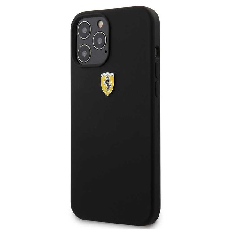 جراب سي جي موبايل فيراري على المسار الصحيح من السيليكون السائل بشعار معدني متوافق مع ايفون 12/12 برو (6.1 بوصات) مقاوم للصدمات والخدش ، سهل الوصول إلى جميع المنافذ (الكاميرات والأزرار ومكبرات الصوت) غطاء خلفي للحماية من السقوط مناسب لشواحن لاسلكية مرخصة رسميًا - أسود