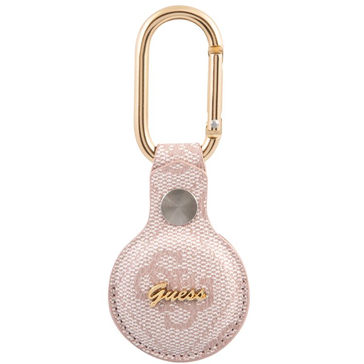 CG MOBILE Guess 4G PU Script Logo Case with Dog Clip for Airtag, Anti-Lost Holder with Keychain, Easy to Attach Keys, Backpacks, Liner Bags Officially Licensed Pink