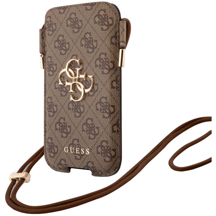 حقيبة هاتف كروس بودي من نوع Guess 4G لجهاز iPhone 12 Pro Max (6.7 بوصة) مع حزام عنق قابل للتعديل، مصنوعة من الجلد الصناعي.