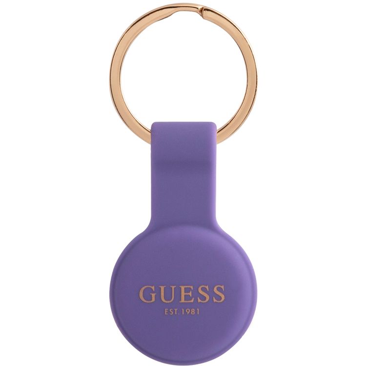 CG MOBILE Guess Silicone Classic Logo Case with Keychain Compatible for Airtag, Portable Protective Skin Cover, Anti-Lost Holder with Key Ring Suitable for AirTag Bluetooth Tracker, Easy to Attach Keys, Backpacks, Liner Bags Officially Licensed - Purple